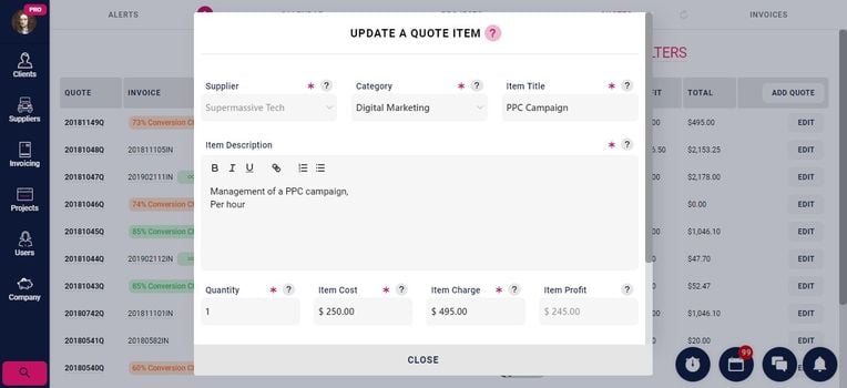 It is a project management software that allows you and your team to manage projects, tasks, collaborations, quotes, billing, reporting, contacts and much more.